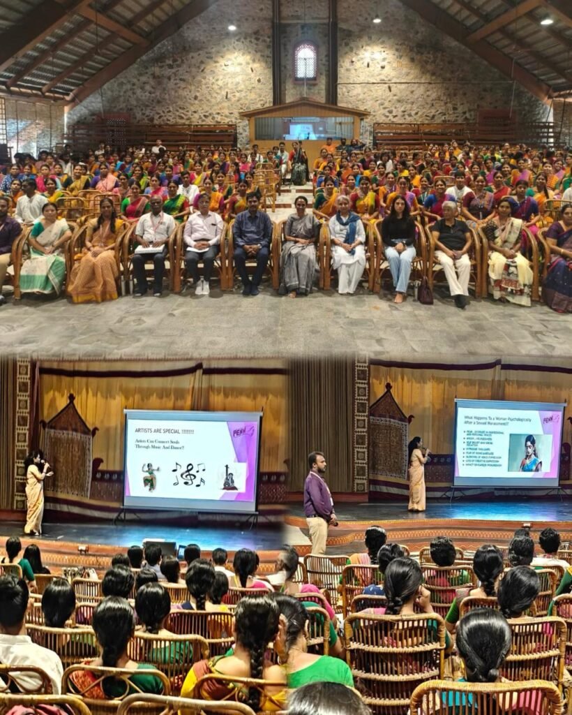 Advisory Board members Ms.Revathi and Ms.Sabitha IAS interacted with students, sharing powerful insights on safety, awareness, and personal responsibility in artistic environments.